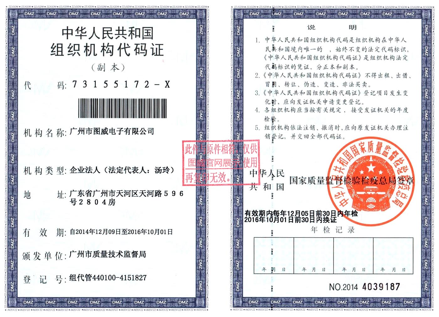 圖威組織機構代碼證